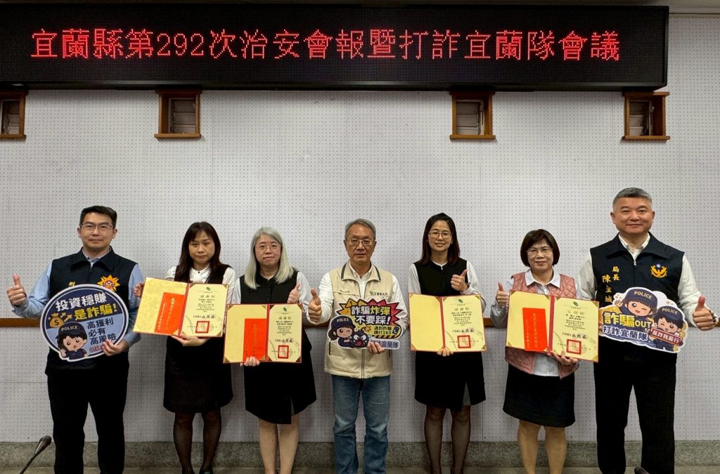 宜蘭縣代理縣長林茂盛二十四日藉由治安會報表揚機警金融機構行員積極攔阻詐騙案之義行,並頒發感謝狀予有功人員,期望透過公開表揚方式,強化全民打擊詐欺犯罪信心,暢通警民良好之通報機制。