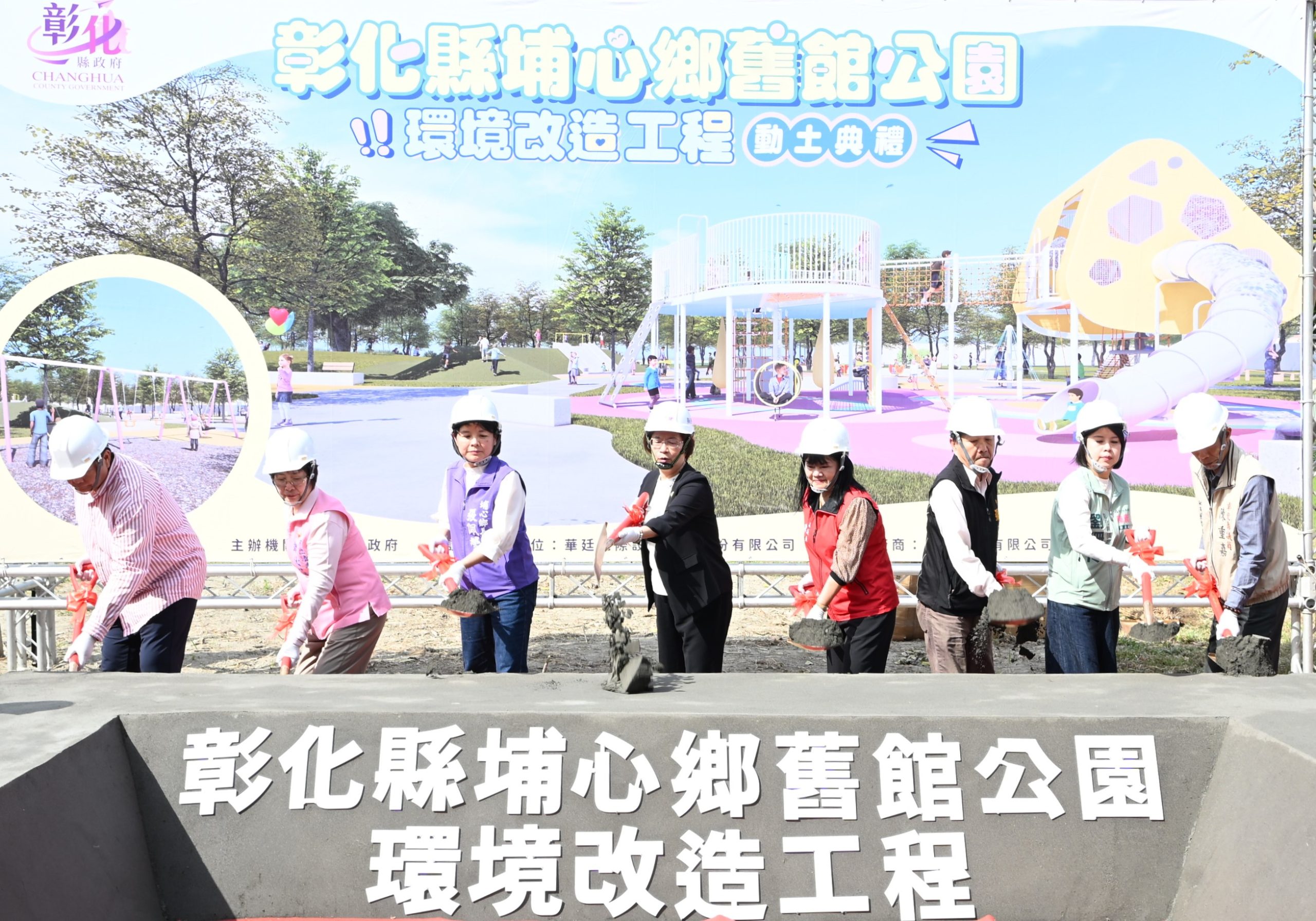 彰化縣埔心鄉舊館公園環境改造工程二十四日舉行開工動土典禮。縣長王惠美表示,本工程在議長謝典霖及議員們對預算的支持下,自籌二四四七萬元,加上增設親子與無障礙廁所等設施加碼六百萬元,總計三0四七萬元。另以埔心知名的「三蜜」產業為設計主軸,預計將為縣內增添親子休憩新亮點。