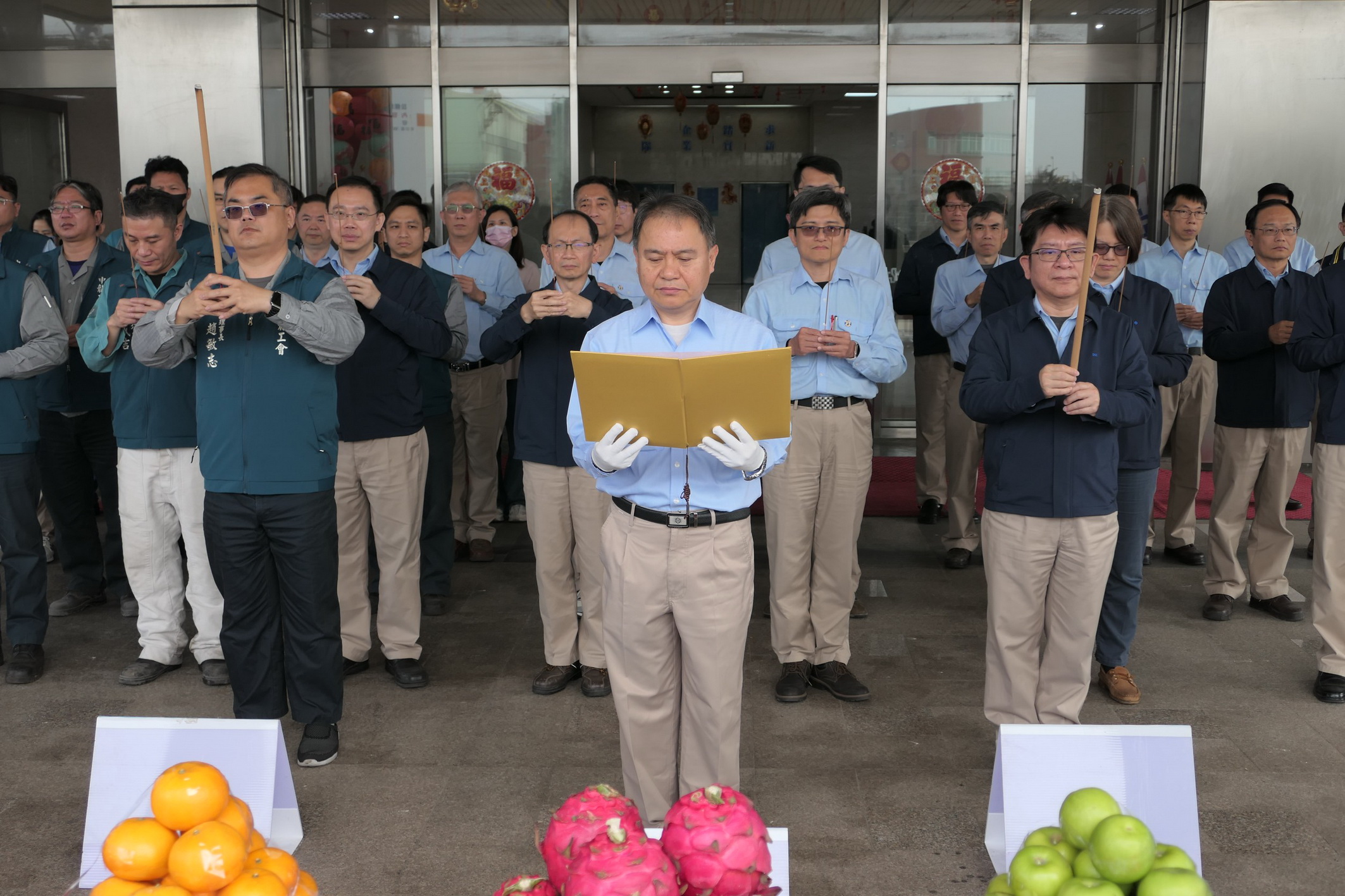 中龍鋼鐵公司二十四日舉辦一一五年新春開泰祈福典禮,由總經理梁乃文擔任主典官,生產部門副總經理洪正雄以及中龍企業工會趙敏志理事長擔任陪典官,與公司經理部門、各單位主管及工會理監事等焚香祈福,祈求馬年營運昌隆、平安順遂。