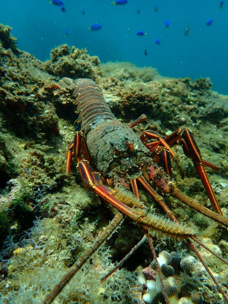 潮境保育區發現龍蝦蛻殼,展現培育資源效果。(海科館提供)