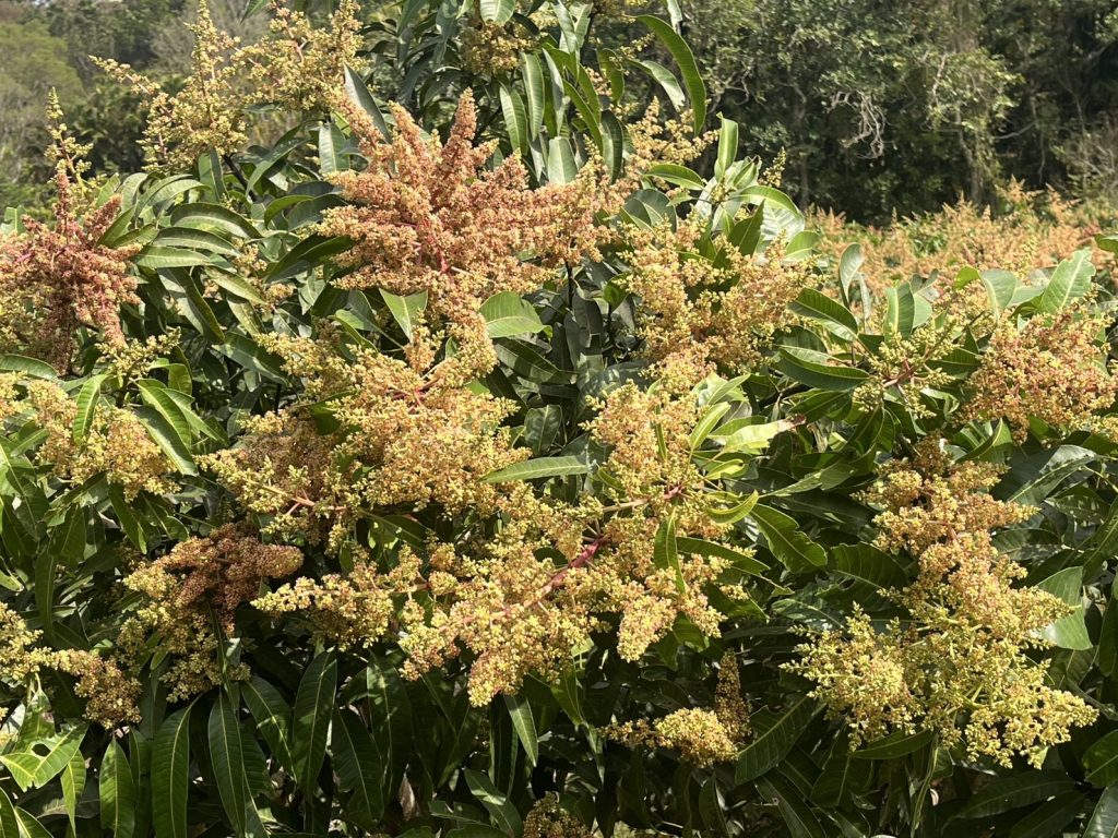 台南市玉井等淺山地區的芒果花已盛開,且相當茂盛,楠西果農指出,此時節若能來場短暫的即時雨,可以協助除蟲害,也有助於芒果花未來的結果率,否則太乾旱了,天氣又熱,讓花提前「夭折」,將影響日後的結果。