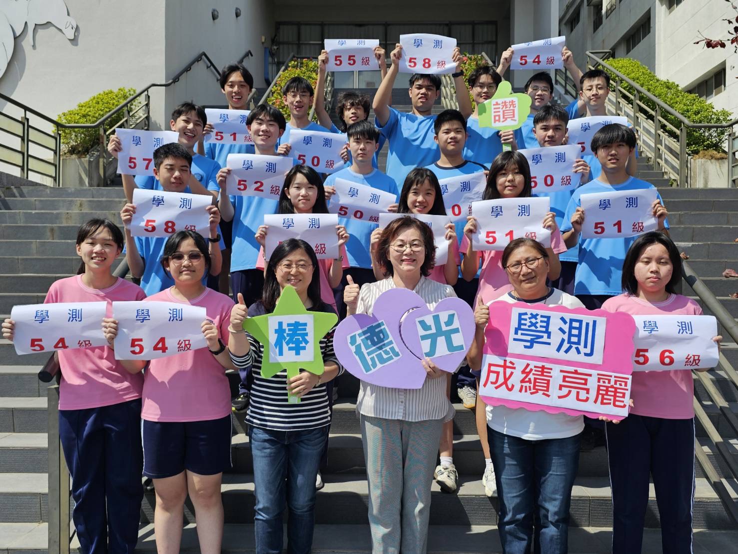 另一方面,德光中學今年學測亦繳出穩健成績,四科達頂標五十級分以上卅人、達前標四十四級分以上八十三人。數理班國英數A與自然總和達頂標卅九百分比、達前標八十九百分比;語文班四科總和亦有百分之三十達前標。校長楊惠娜感謝高三教師團隊的投入,並勉勵準備分科測驗的學生持續努力。
