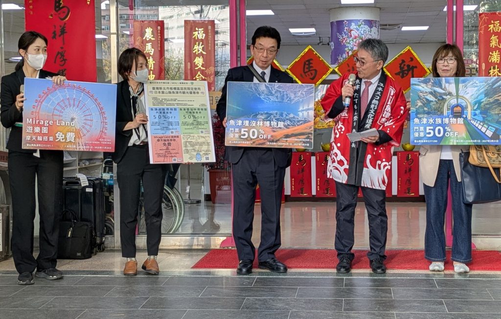 村椿晃宣布,四月一日起設籍板橋的區民造訪富山魚津水族館及魚津埋沒林博物館,只要以手機出示板橋區公所FB置頂貼文內的觀光割引券(優惠券)及身分證,享門票半價優惠,優惠至明年三月三十一日,為期一年;搭乘魚津市「海市蜃樓遊樂園」摩天輪則是免費,優惠至十一月三十日。