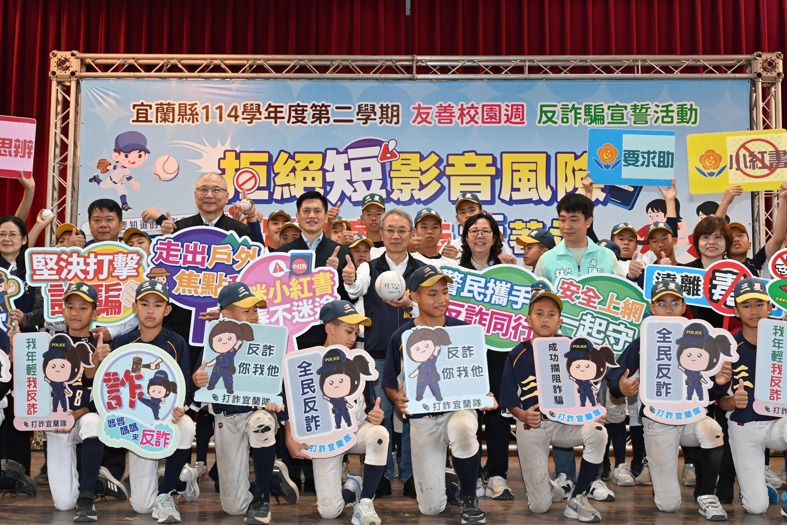 宜蘭縣政府二十六日在三星國中體育館辦理一一四學年度第二學期友善校園週「拒絕短影音風險:別被演算法牽著走,思辨、查證、要求助」宣導活動,由代理縣長林茂盛與三星國中全體二百三十六位師生一起宣誓;為培養新世紀所需的「社會好國民、世界好公民」。