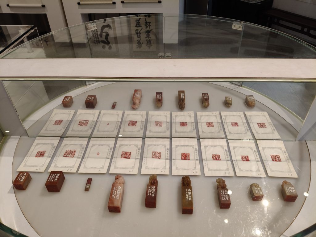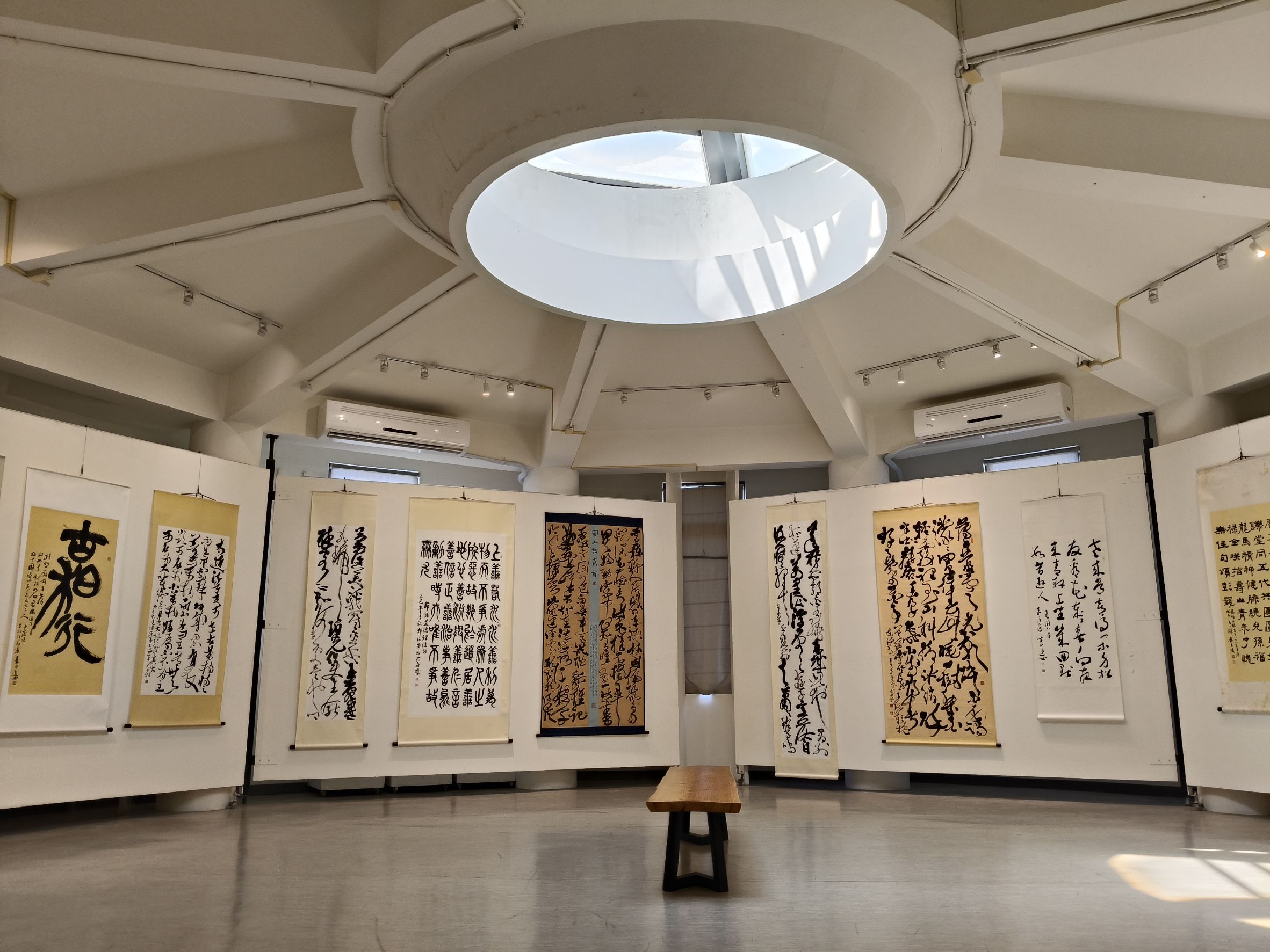 此次展覽作品初探:翁資雄,草書〈杜甫旅夜書懷〉筆法縱橫捭闔,果斷奇崛。陳吉山,獨創「玄草」,匠心獨運;行書〈奇文共欣賞〉,採取中堂形式,「文、欣」二字末筆特別強調,真是「心畫」又宛如叱吒劍道。蘇景炫,以隸行各半書寫〈陶淵明移居其二〉,於陳其銓大師筆法以外自闢蹊徑。連武成,招牌魏碑「為萬世開太平」,擘窠大字,器宇恢弘,豪氣干雲。