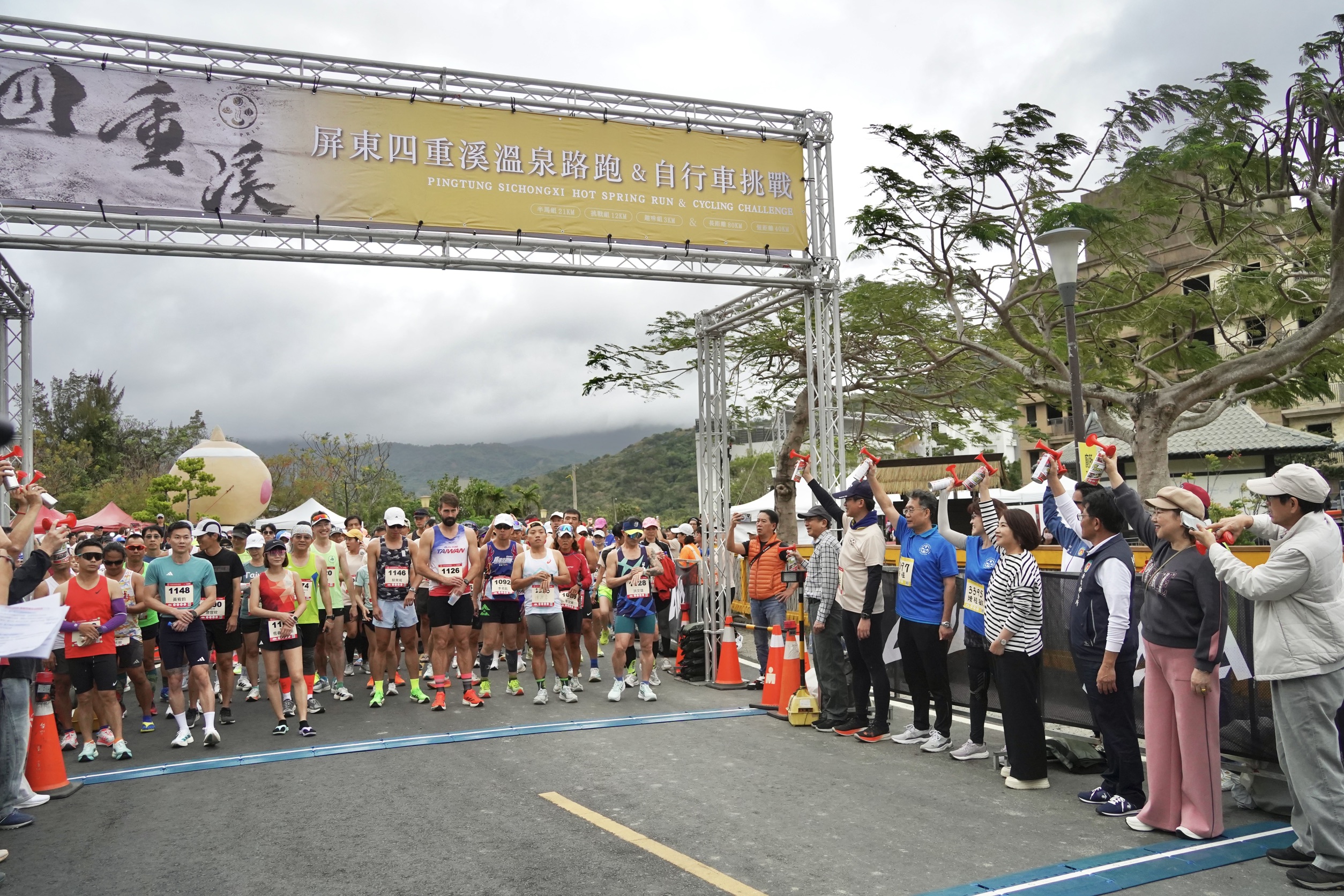 2026屏東四重溪溫泉路跑&自行車挑戰賽於2月28日至3月1日在四重溪溫泉公園熱鬧登場,縣長周春米28日到場與跑者們熱情互動,為賽事揭開序幕。縣府表示,為讓賽事形式更加多元,今年首度將自行車挑戰賽納入活動,歡迎全國車友把握機會,一同在冬日暖陽下熱血騎乘,感受浪漫又充滿能量的運動旅程。