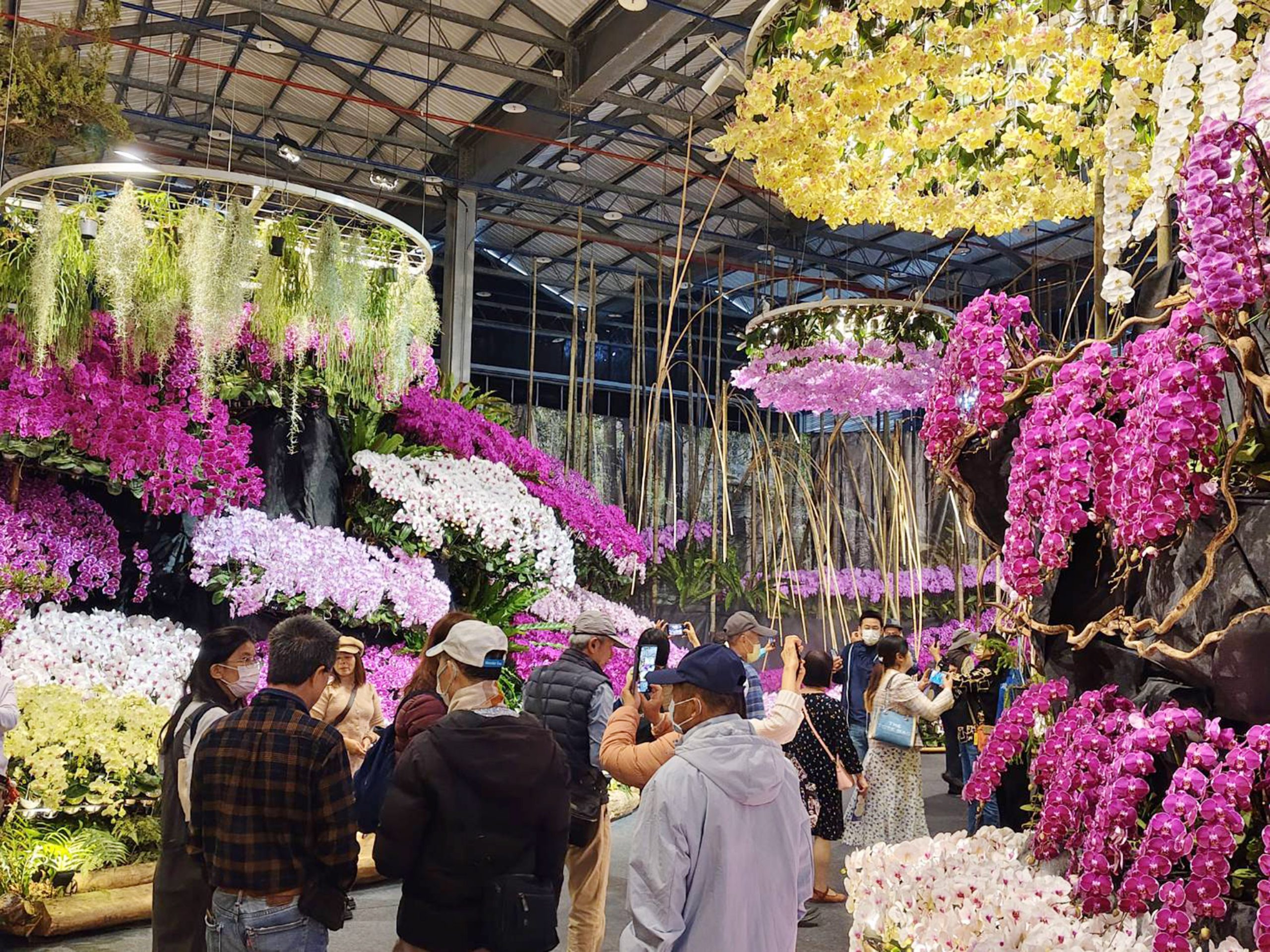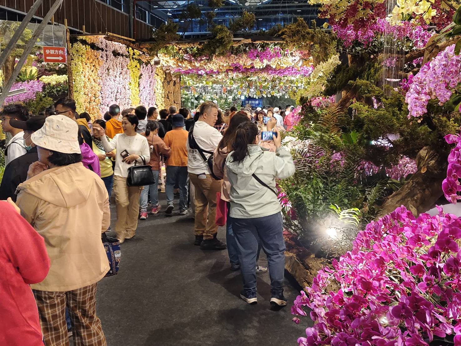 展期的第一個週休,湧進大批遊客,一走進會場,就被美麗蘭花景觀、蘭花造景所驚艷,遊客拿著手機、相機不停拍照、錄影,邊走邊說「哇,實在太漂亮了」。