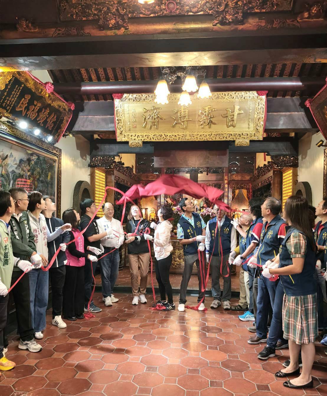 李曉鳳表示,「甘霖溥濟」四字係民國一一三年向賴總統求得墨寶鐫刻成匾,並於一一四年掛匾於正殿之上,經佛祖指示,於一一五年二月二十八日清晨揭匾,由於總統不克親自前來,由立委陳亭妃陪同該廟主委楊木全、偕同許至椿等民代、立委謝龍介執行長童小芸、北區區長潘寶淑等貴賓共同揭匾。