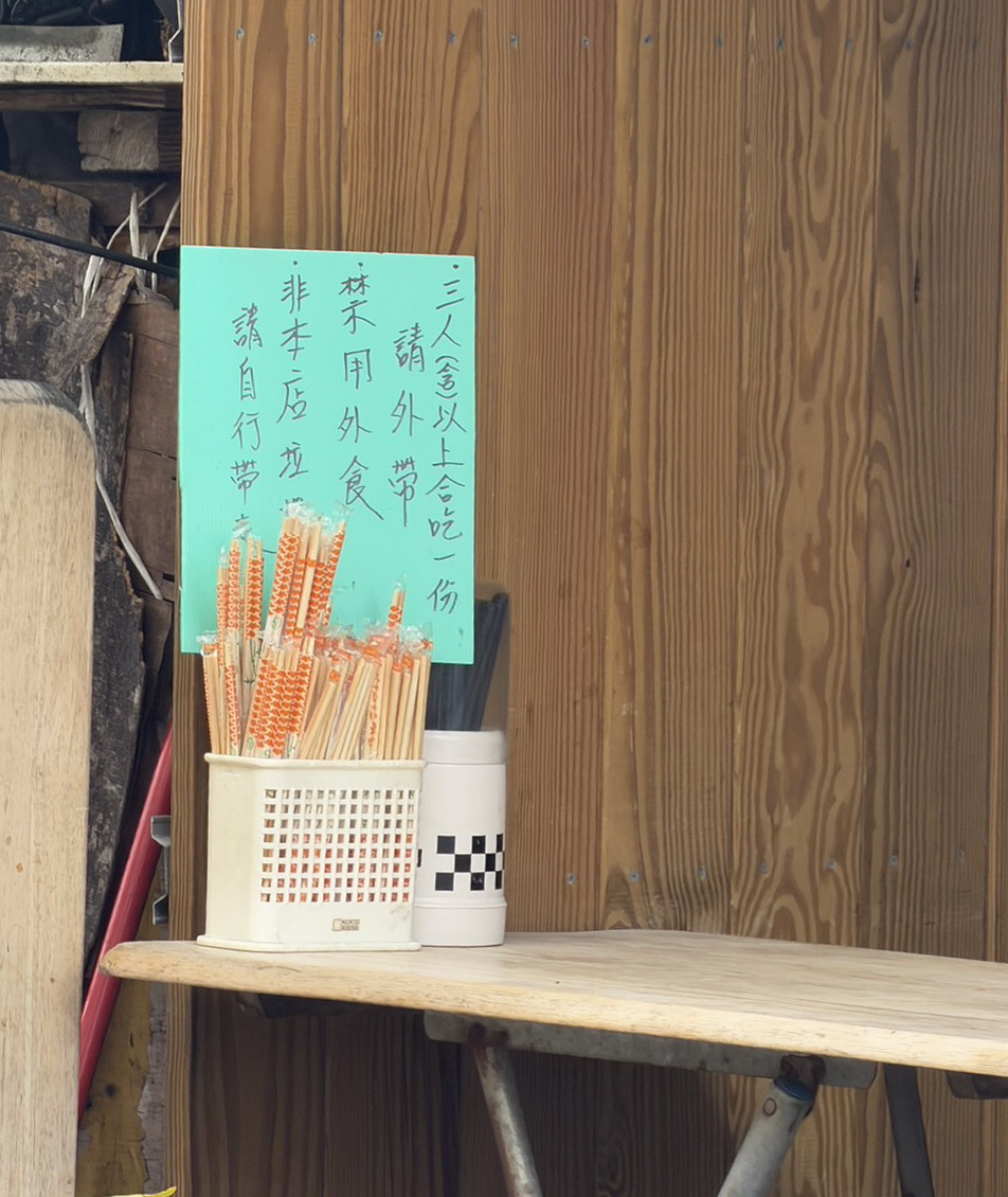 因遊客常多人分食一份又占桌,小吃店不得已祭出「三人點一份只能外帶」的告示。