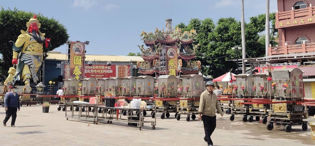 鹽水武廟前廣場可見各式神轎整備,將參與鹽水蜂炮盛會。 (記者陳佳伶攝)