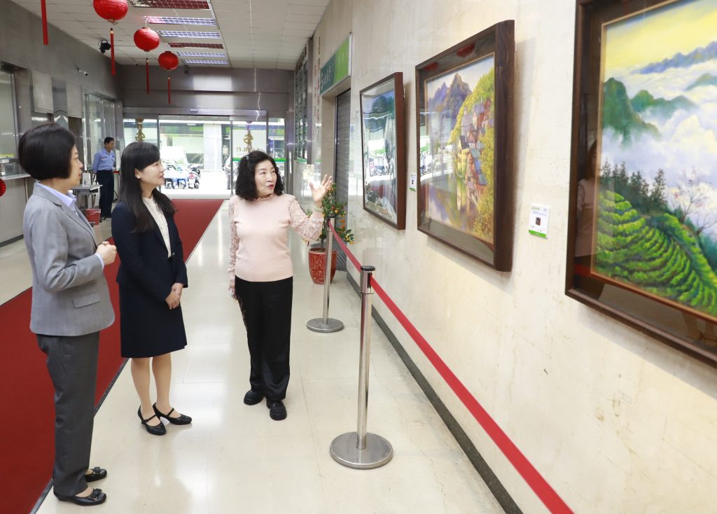 土地銀行總行「館前藝文走廊」舉辦「藝遊妙境-蕭妙修油畫創作展」,透過其獨特的東方水墨意境及西方油畫色彩,讓觀眾一同欣賞臺灣茶山、苗栗三灣等本土美景。