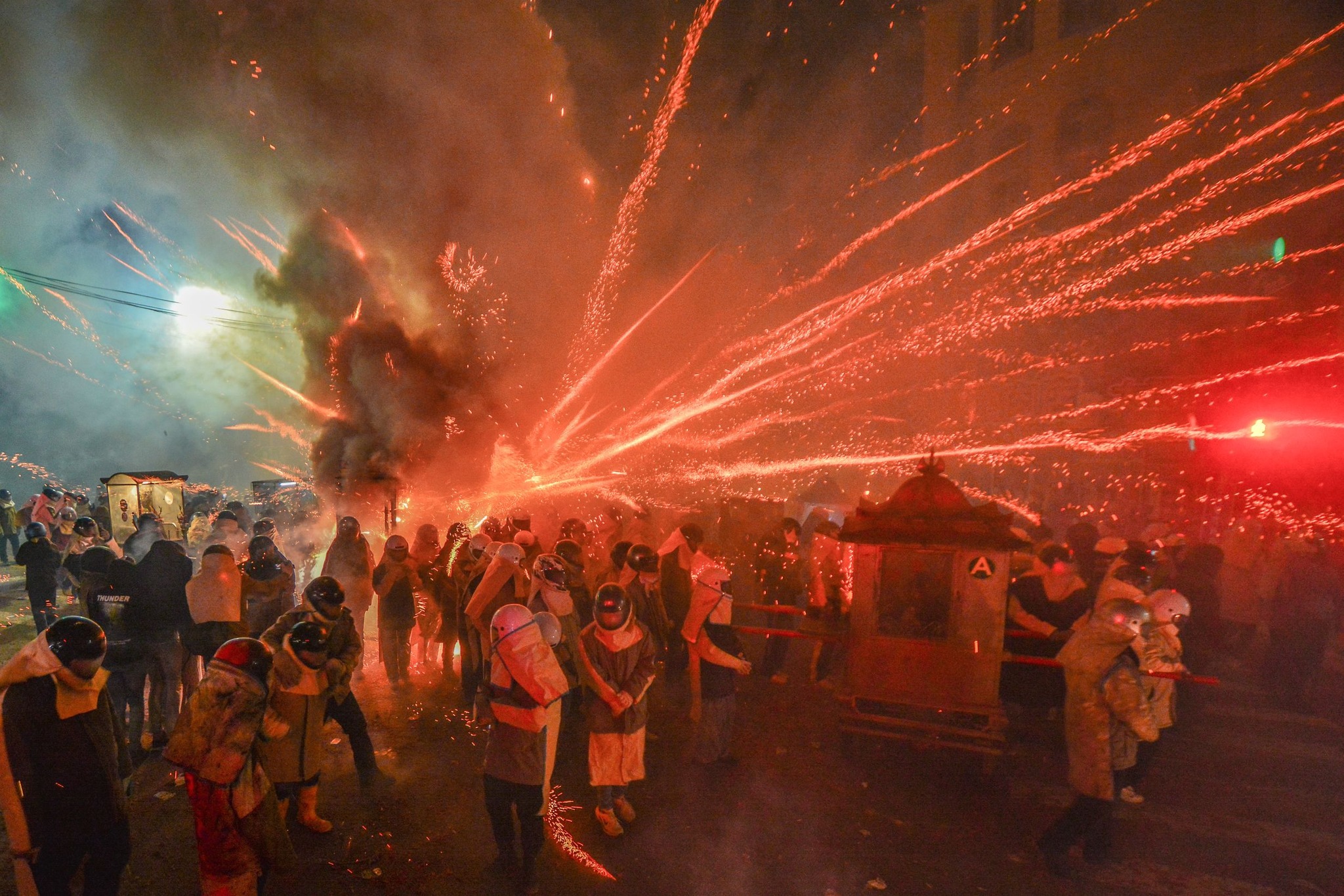 一一五年鹽水蜂炮民俗慶典三月二日上午由台南市長黃偉哲啟炮後,各大廟宇神轎隨即展開兩天兩夜的遶境。據消防局統計至二日下午五點為止,總共有兩百一十一座炮城登記,兩百零一做完成安全檢查。神轎白天分成兩條路線遶行郊區各里,晚上則分成四條路線「犁蜂炮」,首日所燃放的炮城估計約有三十餘座。