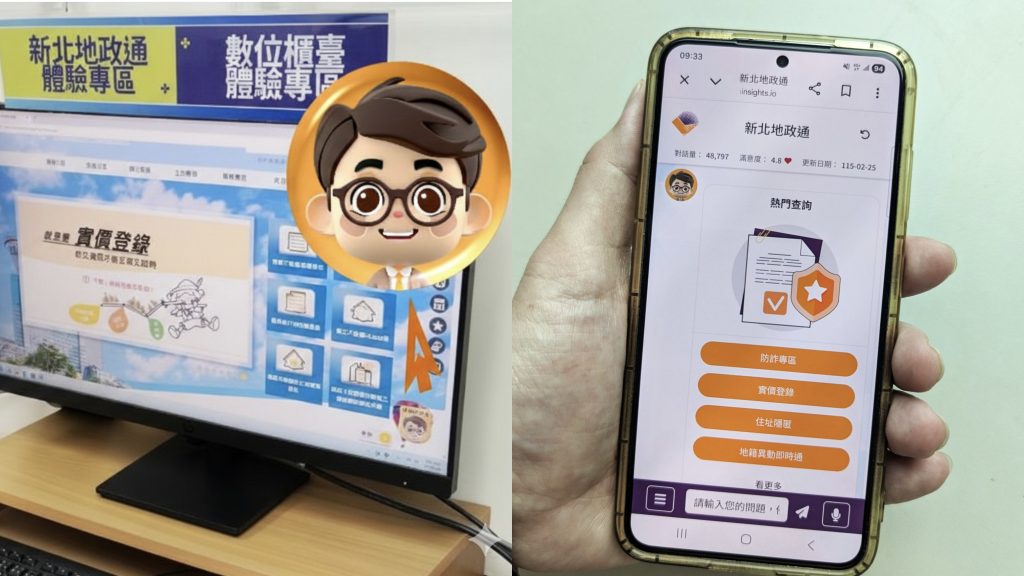 新北市地政局表示,新北地政通結合生成式AI與RAG(檢索增強生成)技術建置智慧客服系統,整合各項地政業務資訊及常見問答資料,提供全天候地政諮詢服務,民眾可打字鍵入問題提問,還支援國、台、英語語音輸入,自113年9月啟用迄今,已回答5萬個問題,滿意度達4.8顆星,深受使用者肯定。