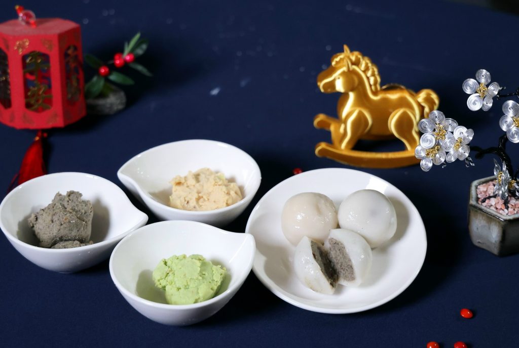 她運用黃豆、黑豆、毛豆這三種優質植物性蛋白,將三種豆類烹煮磨製成餡,取代傳統甜膩配料,研製成營養滿分的內餡,最後將內餡包入糯米粉製成的Q彈湯圓皮,營養均衡的點心就完成了。