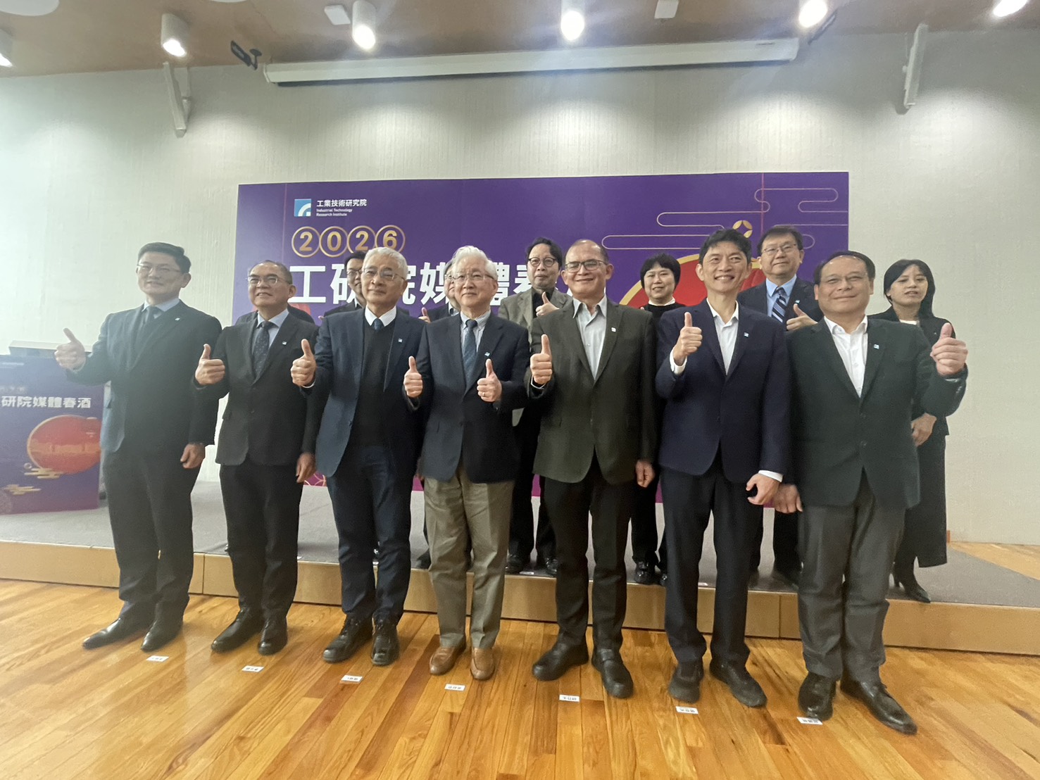 工研院董事長吳政忠(前排中)表示,全球面對生成式AI快速演進與國際科技競逐加劇之際,未來二十年將成為新一波創新的關鍵期,工研院將全力以赴。(記者彭新茹攝)