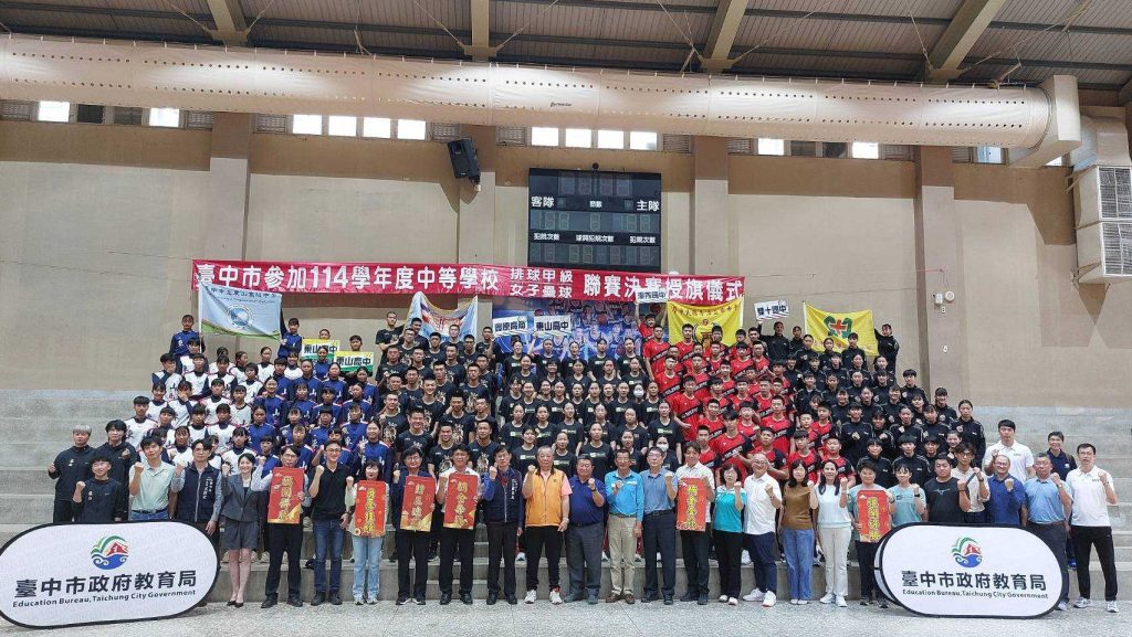 一一四學年度中等學校女子壘球聯賽(HSL)、中等學校排球甲級決賽(HVL、JHVL)三月接續開戰,台中市政府教育局長蔣偉民在「台中市籃球運動中心」為參加決賽的六隊選手們授旗,期許選手持續突破自己的極限,凱旋而歸。