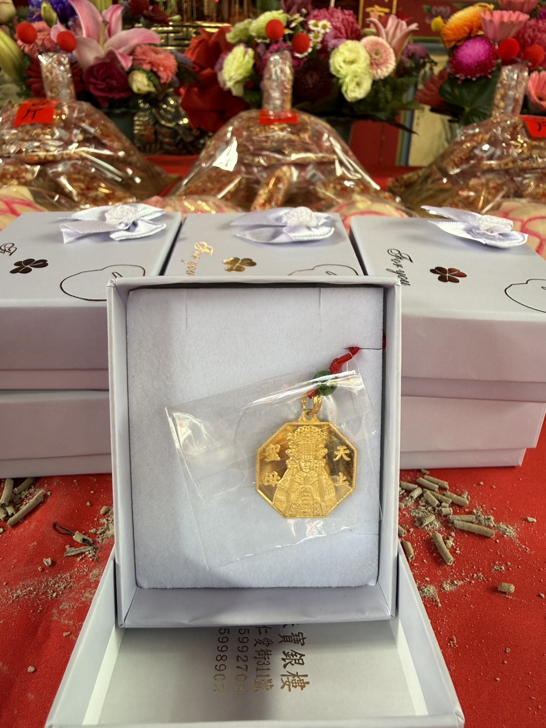 三日晚上新市的老街區熱鬧滾滾,廟前的擲筊換媽祖金牌也排長龍,不過因金價不停的漲,原本每年有十五面金牌讓民眾擲筊,今年只剩下十面,其中七面給信眾擲筊,三面留給工作人員。總幹事葉建池表示,每面金牌兩錢,市價已逾四萬元,若擲筊得金牌的信眾需要花四萬三千元,直接帶走媽祖金牌,且因金價太高,所以換金牌的數量也相對減少了。