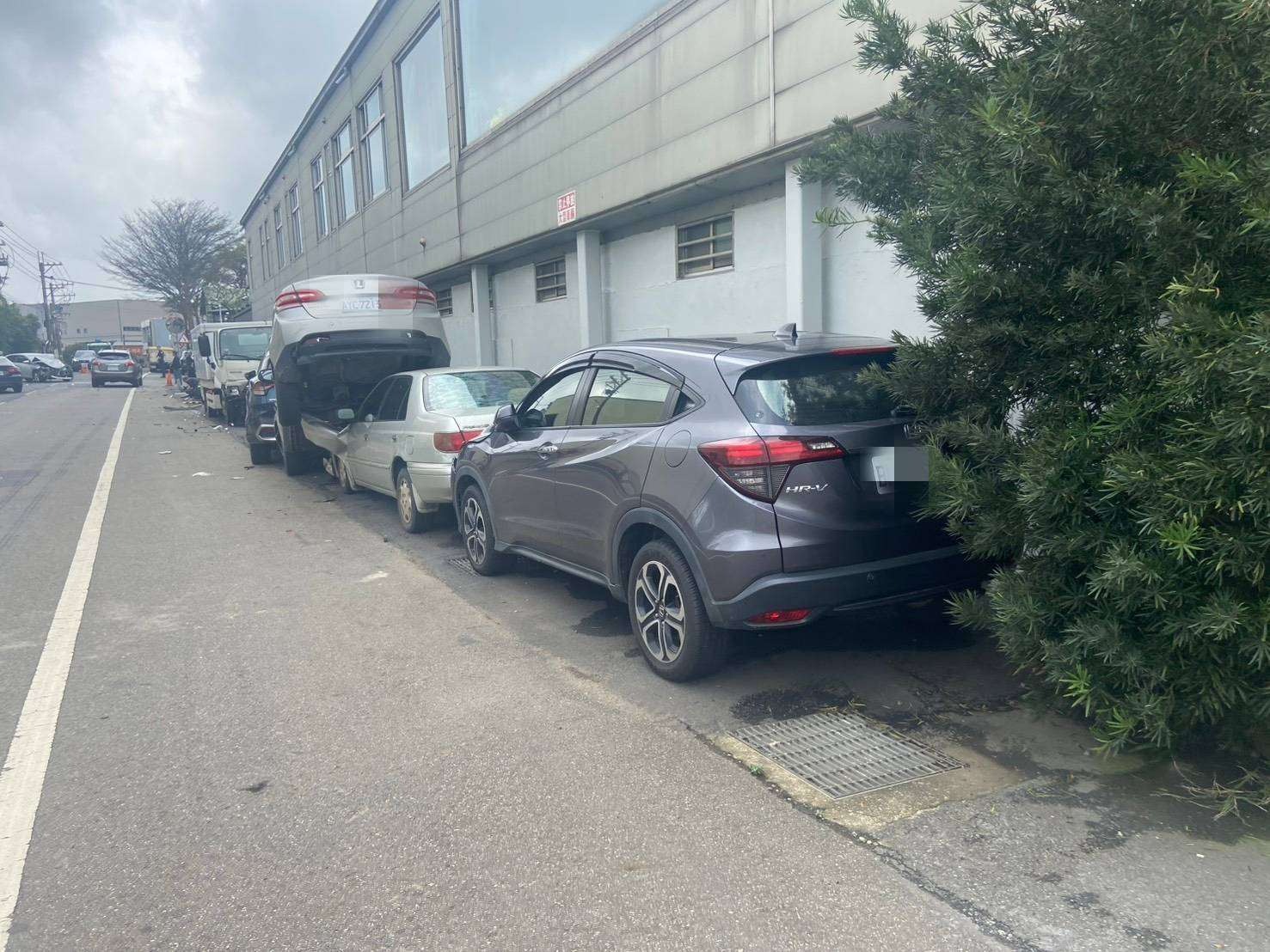 大園交通分隊表示,彭女駕駛自小客車沿觀音區富源六路行駛,欲左轉新富路時,與側向直行的小貨車發生碰撞,導致鄭男駕駛的小貨車往左偏移,撞上路邊停放的17台汽、機車,現場無人傷亡。經警方到場實施酒測檢查,當事人均無酒駕情形。有關詳細肇事原因,尚待警方進一步調查釐清。