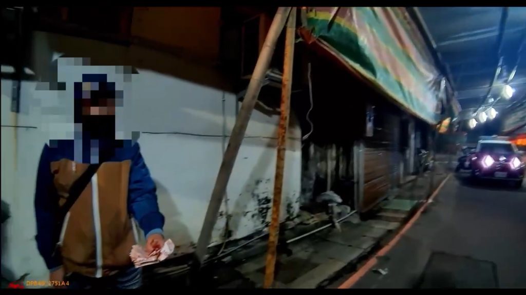 賴嫌翻出口帶滿滿香油錢,當場被警方活逮。(讀者提供)