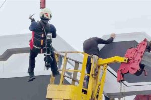 據了解,這名工人當時搭乘吊車吊籃維護主燈區迎賓拱門,疑似拱門設有會動裝置,工人的左手伸至拱門裝置縫隙中,卻無法再將手拔出來,手臂當場被卡住,工人痛到不斷哀嚎。