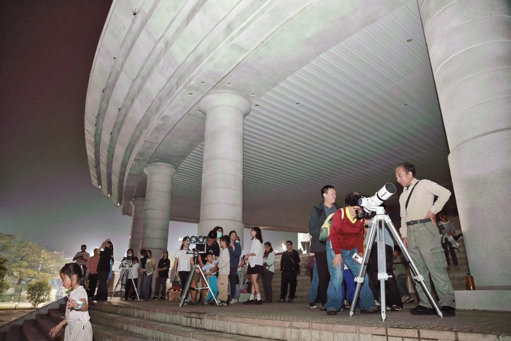 3日天氣變化莫測,正當各地天文迷為陰雨惋惜之際,屏東縣政府攜手屏東縣天文協會,於屏東市、高樹鄉、琉球鄉、車城鄉及恆春鎮等五處同步部署觀測團隊,發揮分區備援優勢,;位於恆春半島的車城國小操場觀測點成功「撥雲見月」,自初虧、食既、食甚、生光至復圓,全程清晰記錄月全食變化。現場透過高畫質天文設備與即時串流技術,將紅月影像同步傳送至屏東市幸福公園主會場,以及高樹、小琉球及恆春東城門現場大螢幕,數千名民眾同步見證天文奇景。紅月高掛夜空時,現場驚呼聲此起彼落,民眾直呼:「幸好有五地連線,屏東真的太強了!」