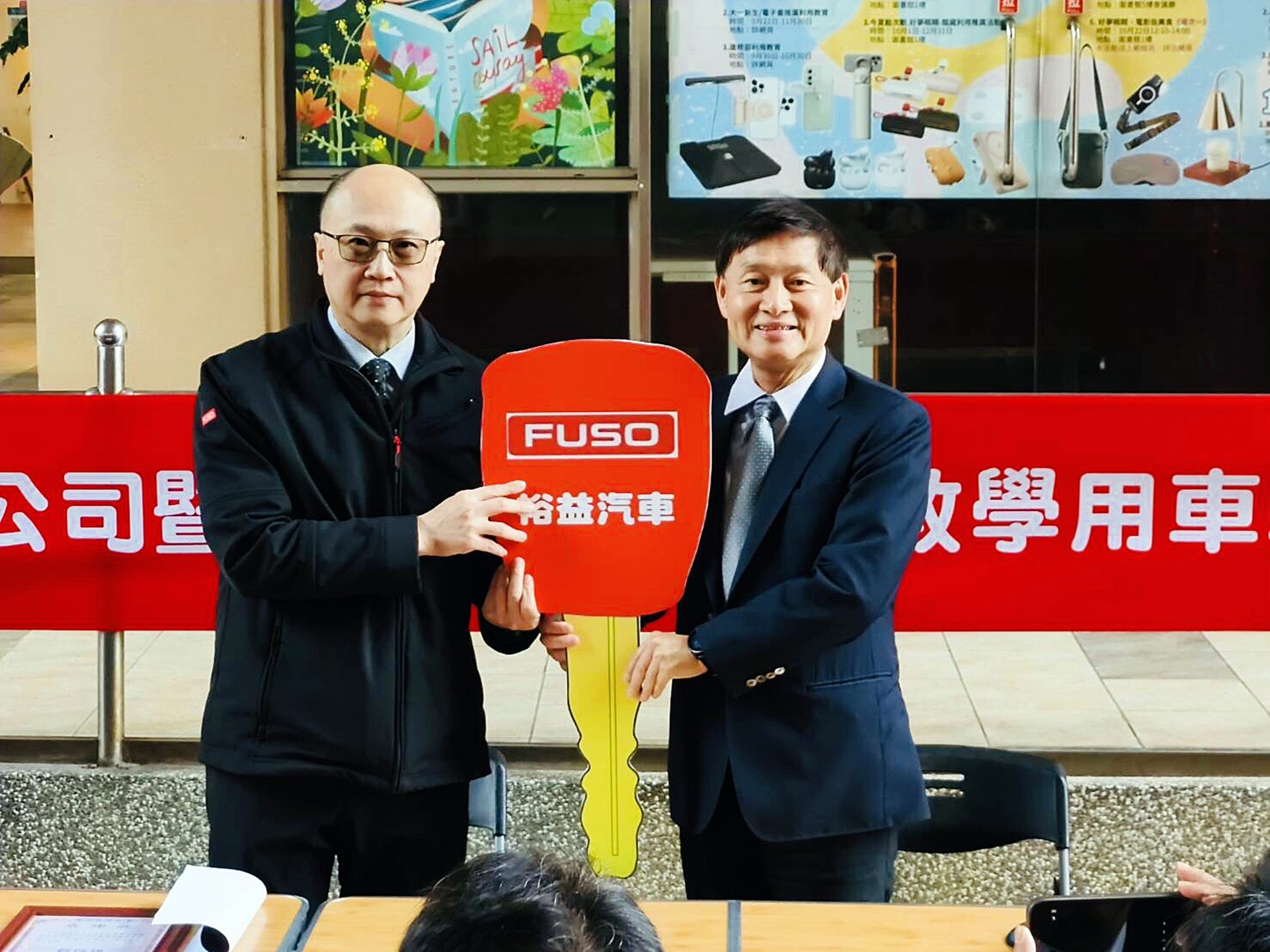 在此發展脈絡下,裕益汽車慷慨捐贈 FUSO 六點九噸混合動力商用車 作為教學設備,進一步強化本校師生的實務學習環境。該車輛將成為課程與研究的重要基石,讓學生能在真實車輛上進行操作與實驗,培養符合產業需求的專業能力。