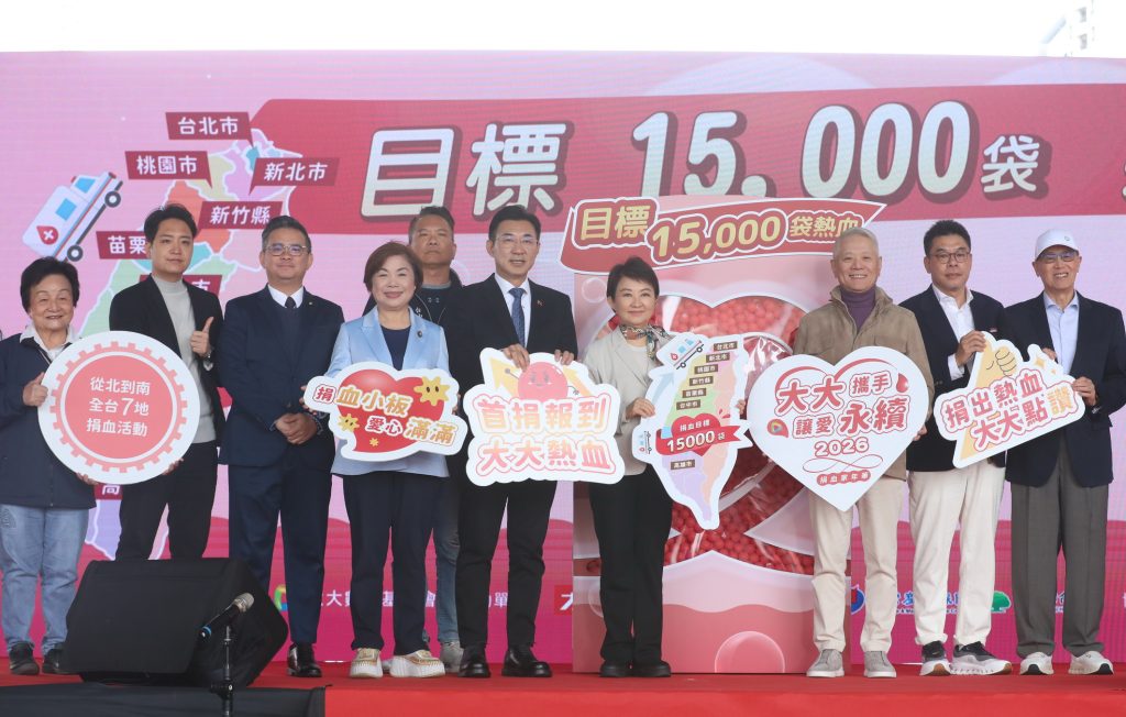 由財團法人大大數位慈善基金會主辦的「大大攜手讓愛永續」捐血嘉年華,四日在台中市政府前廣場盛大舉行,台中市長盧秀燕親自出席並感謝基金會發起全國性捐血活動,為台中注入暖流,並特別鼓勵民眾踴躍挽袖捐血,共同守護台灣醫療品質。