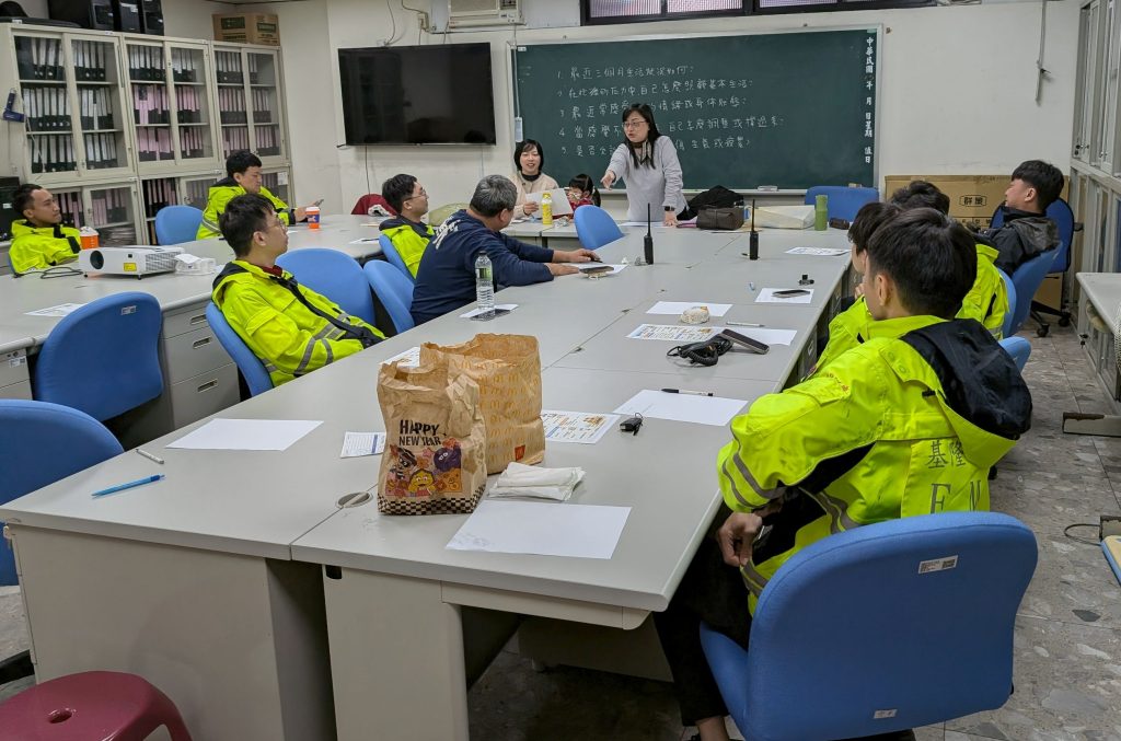 消防人員長期面對火災搶救、重大事故與緊急救護等高壓勤務,常須在極短時間內做出關鍵判斷,身心負荷沉重;若未即時調適情緒,可能累積創傷壓力反應而不自覺。職安團隊規劃系統性心理支持措施,建構安全、信任與保密的支持場域,讓同仁在同儕陪伴中表達感受、彼此理解與支持。