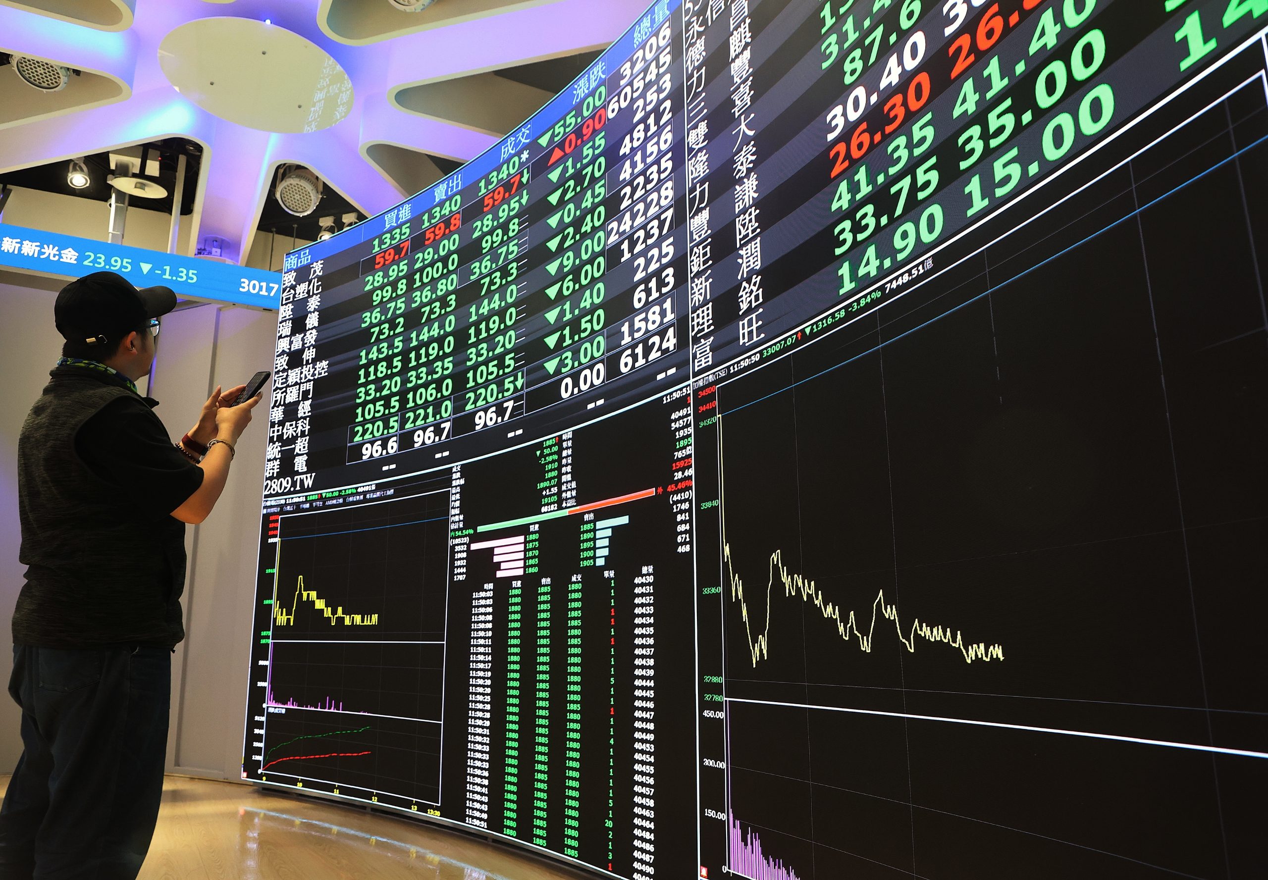 自營商賣超四百點零二億元,投信買超六十七點三一億元,外資及陸資賣超九百六十四點六五億元,為史上第三大賣超金額,三大法人合計賣超一千二百九十七點三六億元。
