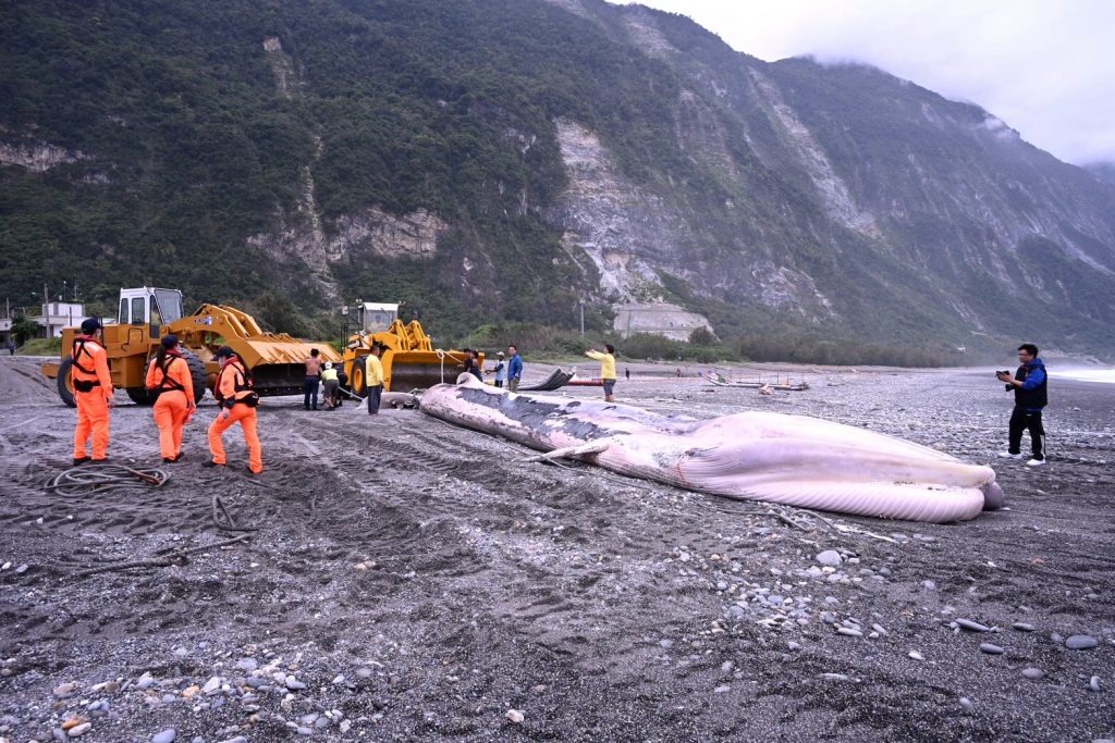 海巡署崇德安檢所四日上午接獲民眾通報,花蓮外海東益發定置漁場發現一隻鬚鯨類死亡個體。經協調,縣府把鯨豚遺體後續處置權移由海保署統籌辦理,將交由科博館、台大、成大、中華鯨豚協會專家團隊、黑潮海洋文教基金會團隊及志工群、遠雄海洋公園人員與相關工作人員進行初步解剖與採樣作業。後續骨骼標本預計製作後交由科博館典藏展示。