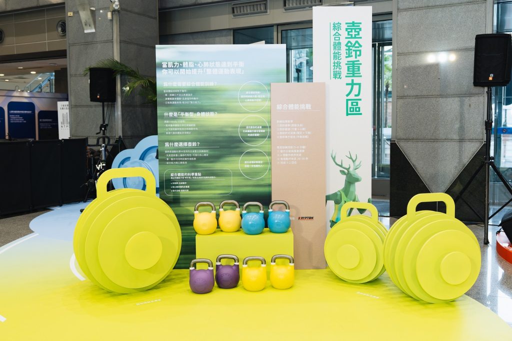 除了身體數據分析,現場更設置五大互動體驗展區,包括「急速飛輪區」、「壺鈴重力區」、「彈力回彈區」、「啞鈴擺臂區」及「跳舞律動區」,由專業教練現場帶領體驗,從肌力、耐力、協調性到節奏感等不同面向強化身體能力,讓運動科學不再艱深,而是人人都能輕鬆理解與實踐的生活工具。