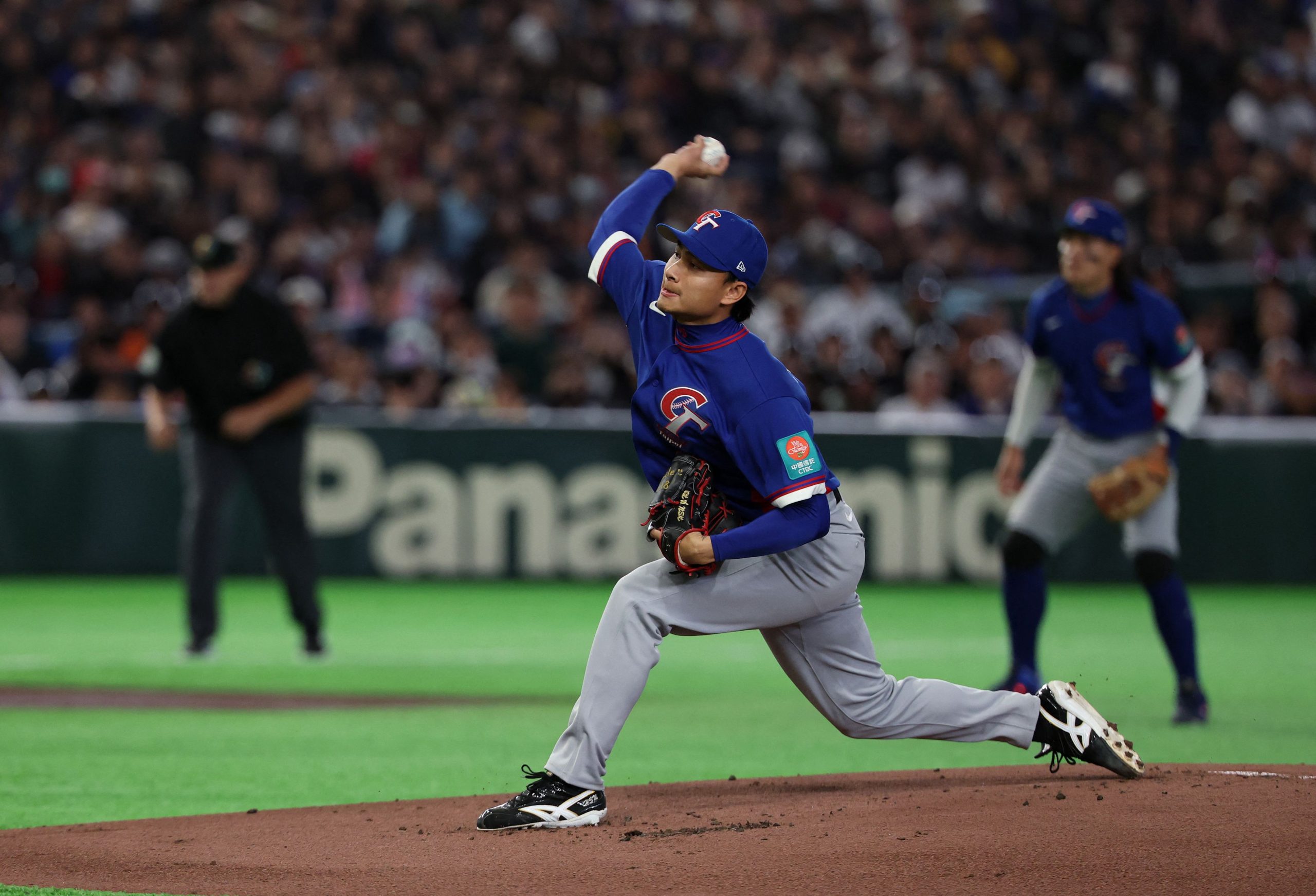 WBC首戰徐若熙擔任中華隊先發投手,主投4局用53球,只被敲出2安、無失分。(路透)