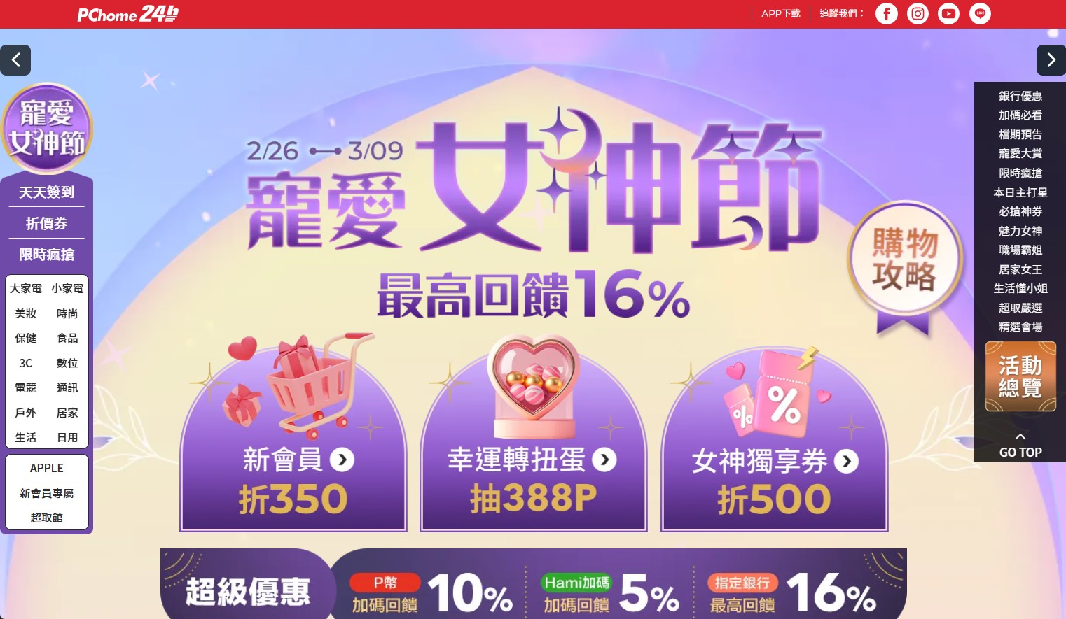 迎接女神節,準備好要美美地去見idol了嗎?3月國內外明星在台舉辦大型演唱會熱潮不斷,PChome 24h購物發現最近站上追星應援的討論熱度熱烈,大家都在為近期的演唱會行程提前治裝補貨!站上數據顯示,「長焦手機」及「專櫃保養」(2/25-3/3)當週關鍵字搜尋量持續增長,畢竟進場除了要記錄下偶像神顏,自己的狀態更要維持在巔峰。PChome 24h購物即日起至3/9祭出「寵愛女神節」,集結「數位戰力應援」與「美妝美型修復」兩大類必備好物,PChome 24h購物全站提供北北桃地區消費者可透過「PChome 超速配」服務,於指定門市享有「晚上下單,一早取貨」的超速便利,三月加碼超速配登記送菠蘿奶酥,首次使用再送20 P幣。全站活動新會員首購折350元、APP限定幸運轉扭蛋最高抽388元購物金、指定滿5,000元即日起至3/8每日12:00限量抽女神獨享券500元折價券,還有星展 PChome Prime聯名卡最高回饋16%。