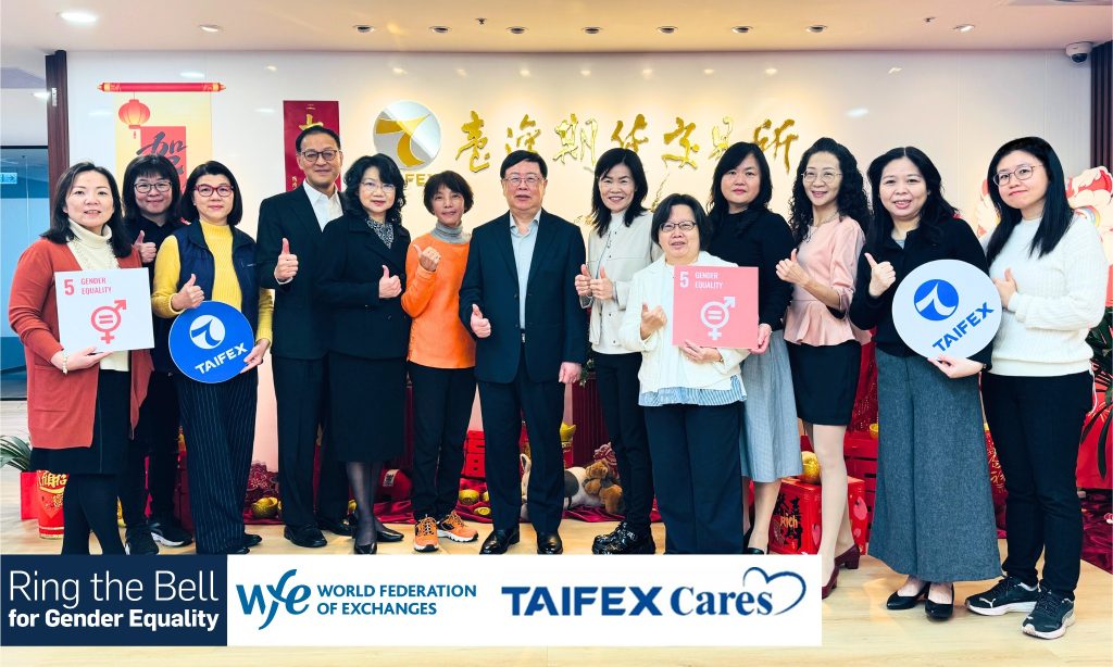 今(2026)年國際婦女節,臺灣期貨交易所(期交所)再度響應世界交易所聯合會(WFE)發起之「性別平權敲鐘」(Ring the Bell for Gender Equality)活動。在吳自心董事長與周建隆總經理帶領下,期交所女性主管齊聚響應,傳遞對職場性別平等與女性賦權之積極作為,展現對多元與包容價值之重視,彰顯「TAIFEX Cares」精神。