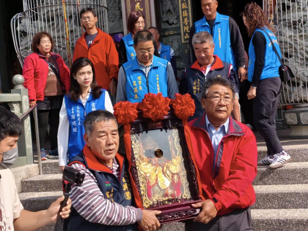 五股開臺尊王協會理事長王萬來及理監事、文觀處長謝明璇等貴賓,六日上午於豐田村成功廟依循古禮向國姓公參拜後,恭請國姓公正駕、副駕與甘爺、萬爺等神尊出龕。