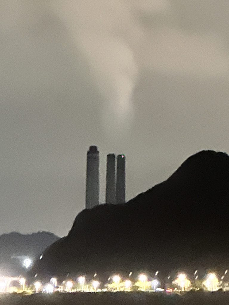 立委林沛祥關切美伊戰爭影響能源電價,經濟部表示啟動非天然氣為備手,基隆協和機組停止商轉,仍有民眾在一一四年十二月拍攝到夜晚燃油冒煙照片。(基隆市民提供)