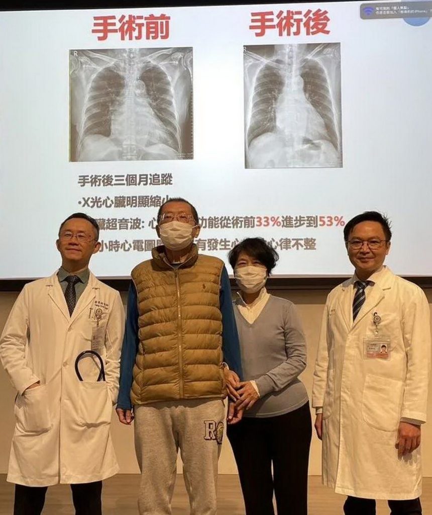 陳男術後1個月追蹤顯示,心臟收縮功能由原本32%提升至53%,瓣膜逆流消失,24小時心電圖亦未再出現心室性心律不整,恢復日常生活。陳男表示,身體狀況比手術前更好;陳太太回憶從機上驚魂到返台治療的過程,對醫療團隊的專業與細心深表感謝與安心。