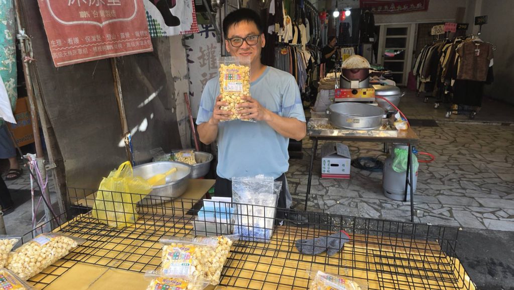 阿勝除在市場擺攤外,爆米花也開放線上訂購,賽場以外的人生也有發光發熱的機會。(記者王勗攝)
