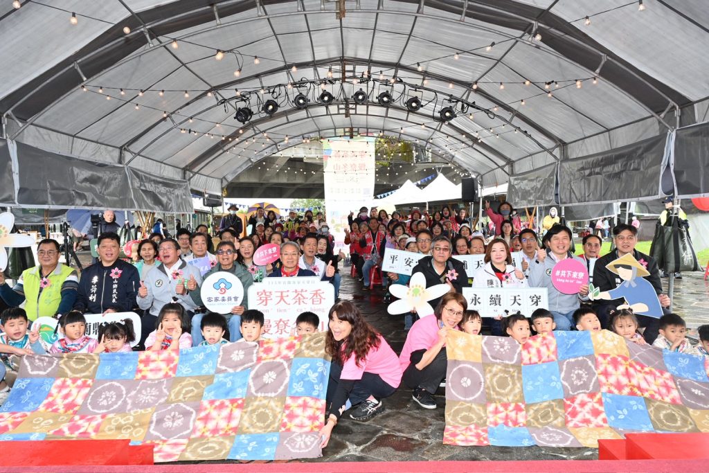 活動現場規劃了豐富的體驗區,民眾透過擂茶、柿染、醃醬瓜及「百家共拼」拼布畫,感受客家惜物精神。