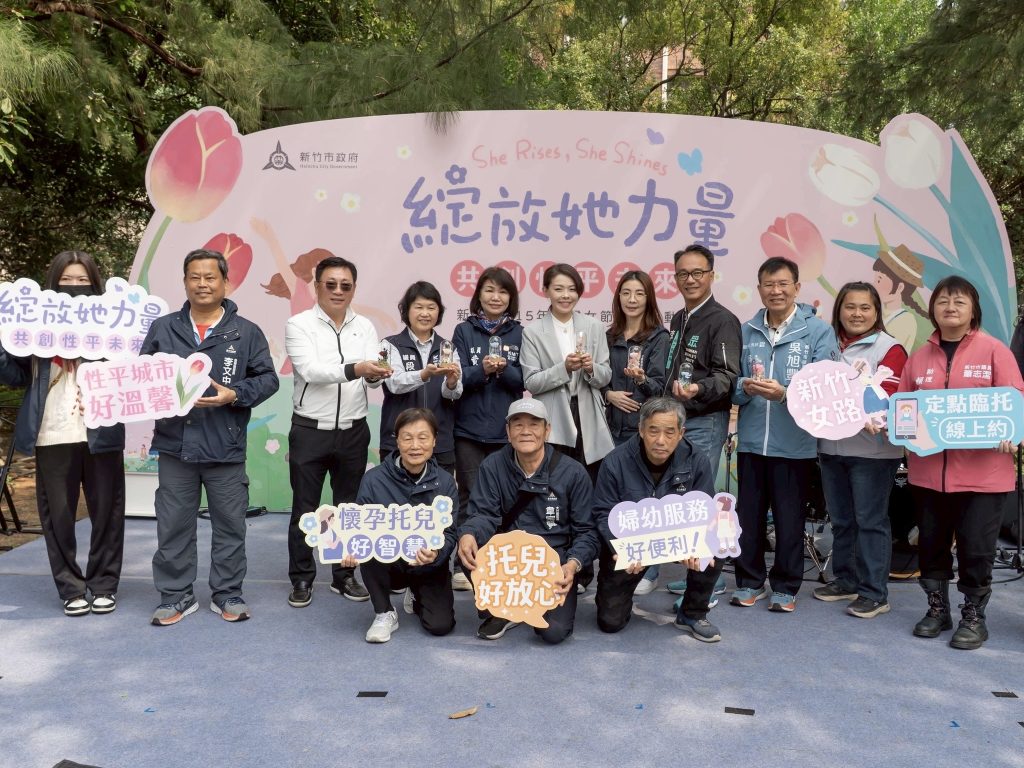 為響應三月八日國際婦女節,竹市府八日於新竹二二八紀念公園舉辦「綻放她力量-共創性平未來」婦女節慶祝活動,結合姊妹市集、舞台表演、療癒體驗及首度推出的「女路」走讀行程,吸引許多民眾攜家帶眷熱情參與。市長高虹安當場宣布「定點臨托線上預約」、「到宅坐月子服務2.0 part2」及「托育服務獎勵金」等三項婦女育兒新措施上路,現場氣氛溫馨熱絡。