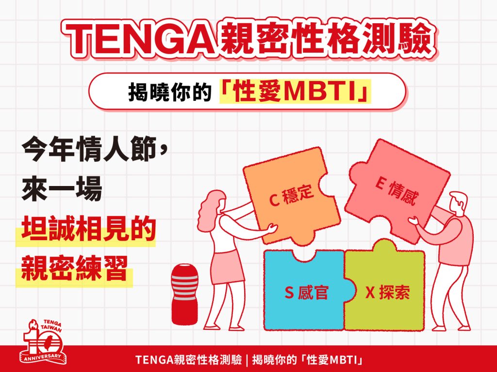 性愛也有 MBTI? 日本性健康品牌TENGA 迎來來台 10 週年的重要里程碑,在白色情人節前夕攜手心理師推出「性愛版 MBTI」。 透過四種親密人格解析關係中的需求差異,從情緒與感官的啟動方式切入,解析「溫度守護者」、「情熱冒險家」、「氛圍職人」與「快感獵人」4 種親密人格,帶領大眾理解關係中的需求差異。心理師指出,多數伴侶衝突並非感情變淡,而是彼此互動節奏不同;當理解取代猜測、溝通取代誤解,親密關係反而更容易找到新的平衡。