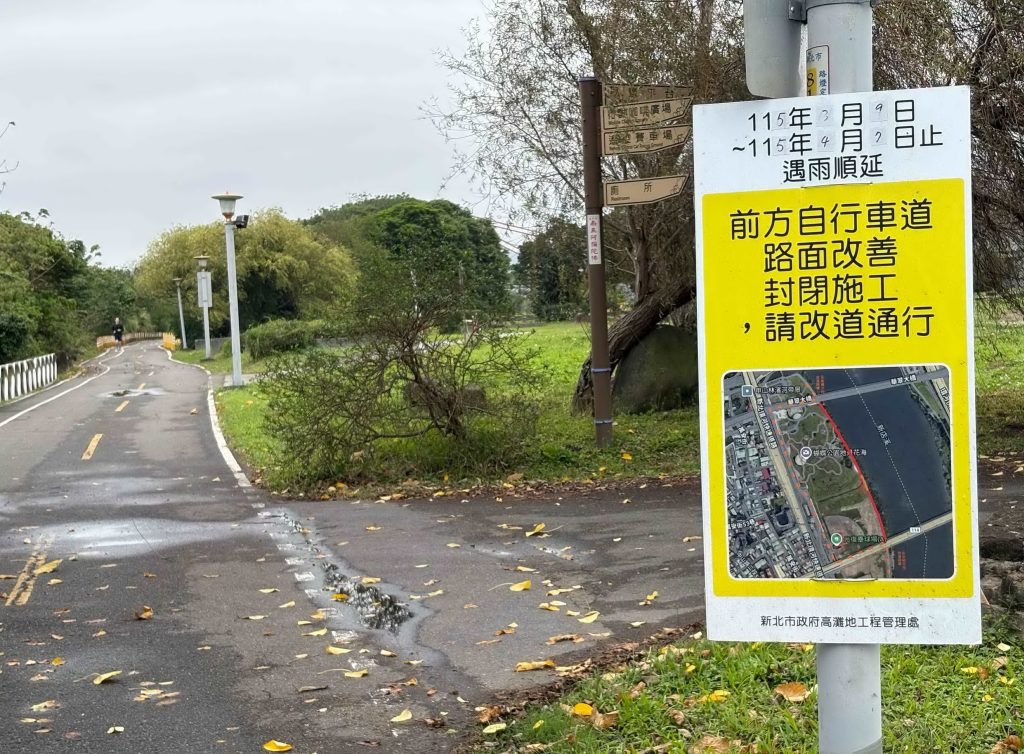 新北市府高灘地工程管理處為改善新北市河濱江子翠自行車道並提升騎乘品質,即日起至四月七日封閉江子翠自行車道進行鋪面改善工程,施工期間請車友及休閒民眾配合改道通行,以維護安全及工程順利進行。