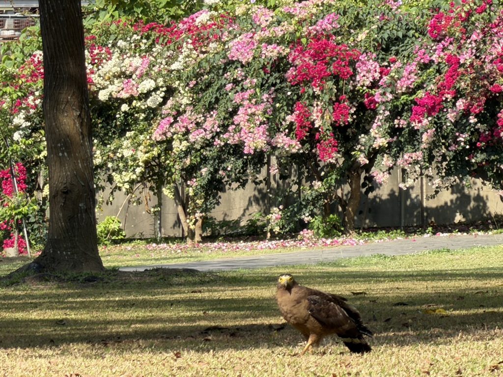 館方表示,園區保留大片草地與林木環境,加上生態環境良好,吸引多種鳥類棲息與活動,這次近距離觀察到大冠鷲在地面活動,再次顯示園區生態環境多樣且穩定。