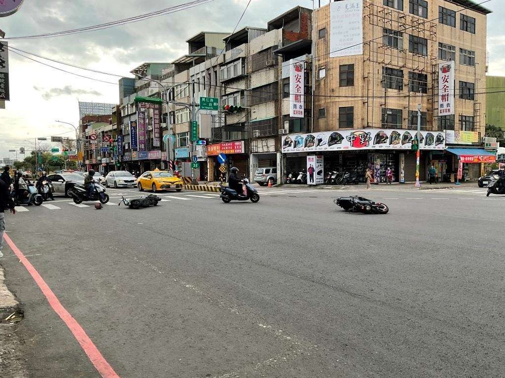 中壢交通中隊說明,黎男騎乘機車停等於機車待轉區,跨越禁止變換車道線欲沿中華路一段往中壢方向直行時,與同行向騎乘機車於慢車道之汪婦發生交通事故,雙方均受有多處擦挫傷。經警方到場實施酒測檢查,雙方酒測值均為0。有關詳細肇事原因,尚待警方進一步調查釐清。