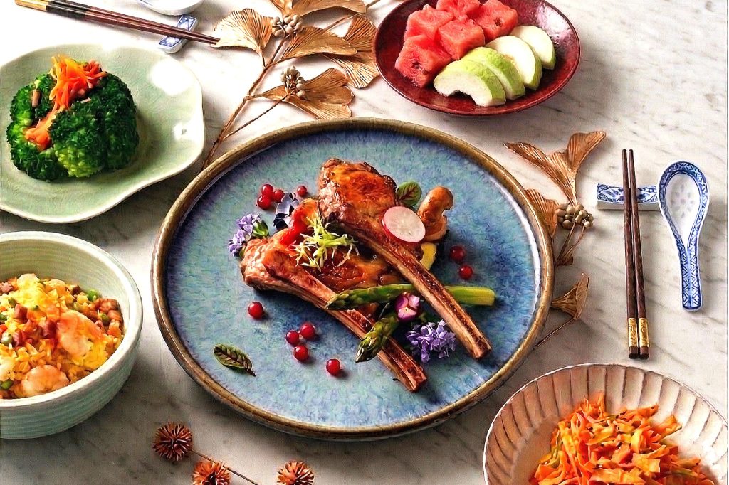 主廚嚴選高品質黑毛豬帶骨里肌肉,肉質鮮甜 Q 彈且無雜味,經獨家香辛料醃漬入味後煎烤至表皮酥脆,完美鎖住適中油脂與豐盈肉汁,淋上喼汁後,酸甜滋味讓層次更顯豐富。搭配「金沙鱈魚香絲」與「揚州香蔥炒飯」等精緻佳餚,讓旅客在享受寬敞舒適空間之餘,更能免費大啖弈夢紅樓融合傳統與創新的頂級手藝。