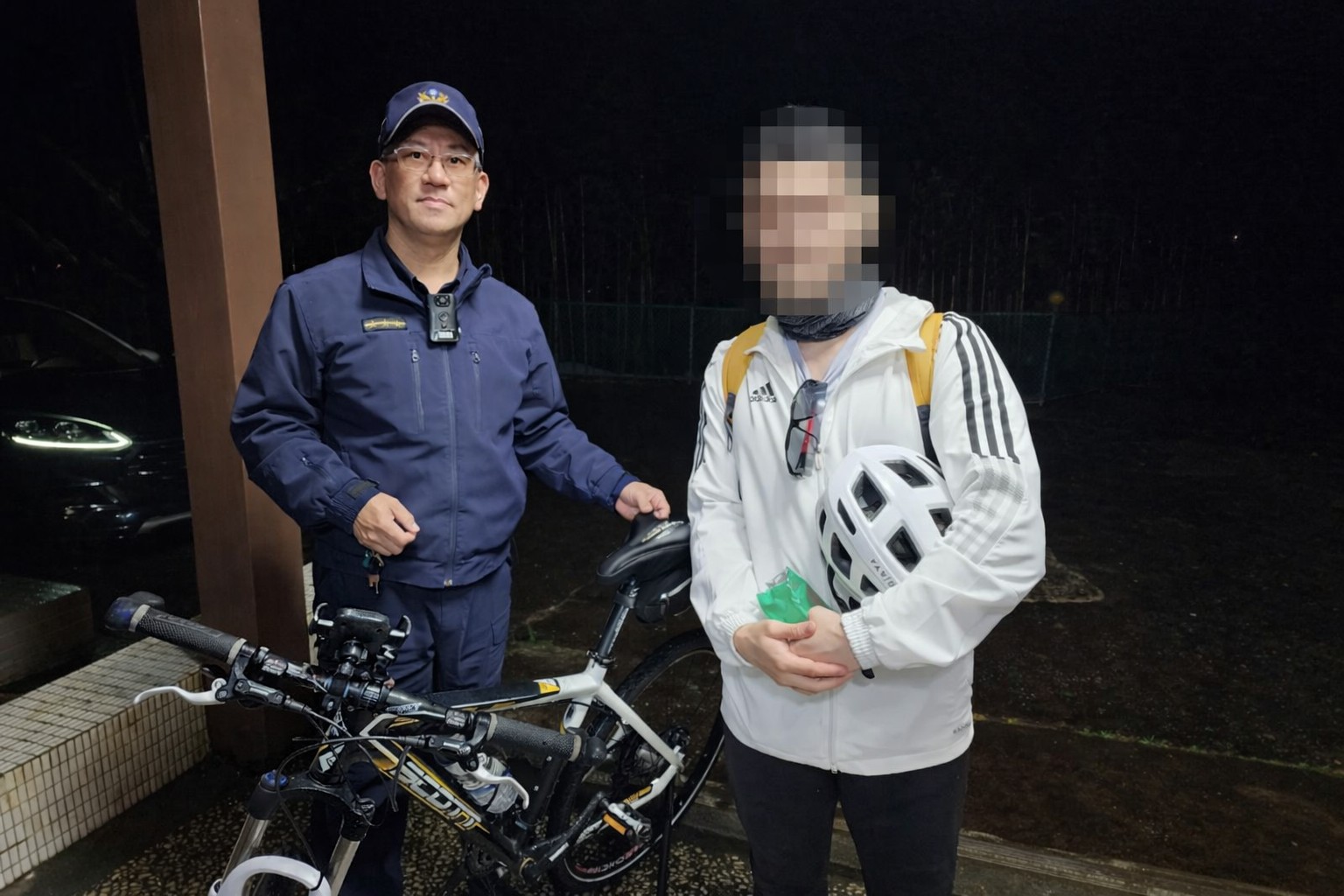 員警見男子因低溫與疲勞顯得相當虛弱,先提供熱水及餅乾讓他補充體力與暖身,隨後駕駛巡邏車,協助載送騎士及自行車前往英士地區,並順利安排入住英仕山莊休息,讓這趟驚險的夜騎旅程畫下平安句點。
