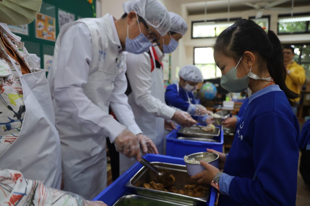 以北大國小為例,校內設有自立廚房,由專業廚工團隊在校現場烹調餐點,並同時供應鄰近龍埔國小及中園國小,每日約提供三千五百份餐食,不僅縮短運送時間,也有助提升餐食品質與用餐口感。