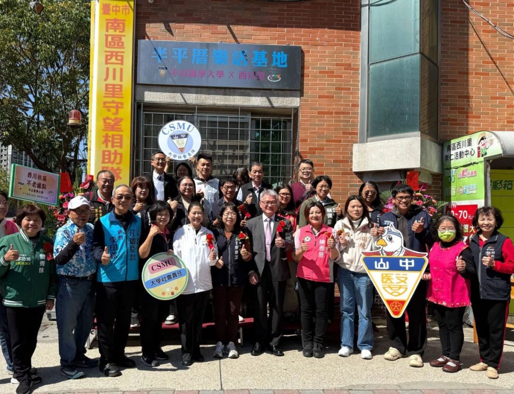 中山醫學大學十二日在台中市南區西川里崇仁活動中心舉行「半平厝樂活基地」揭牌儀式。校方進駐社區近一年,整合公共衛生、心理、職安、營養與健康產業管理等跨領域專業,打造以「健康一體化」為核心的社區合作模式,期望將專業帶入社區,提升在地健康照護與生活品質。