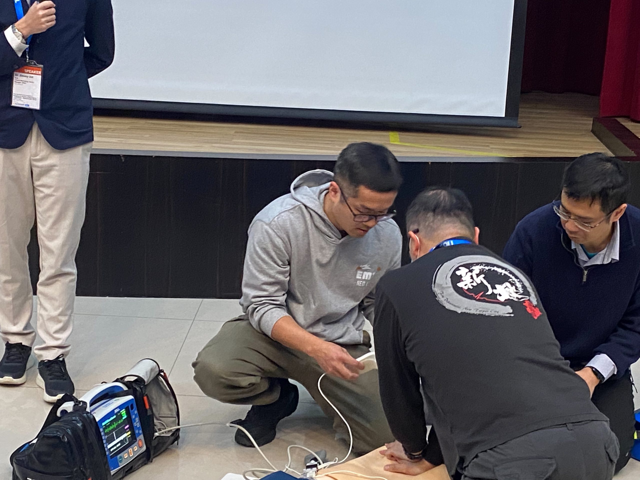研討會內容涵蓋從第一線實務到制度面的全方位進化,首場由Kevin Joles 科長分享來自美國的 EMS 現場救護技術經驗,緊接著由Sattha Riyapan 副教授解析泰國導入機械式心肺復甦術(Mechanical CPR)從試辦到政策落實的歷程。最後由兩位專家帶領大家進行「EMS Pit Crew 分工部署」的情境示範,將國際先進的團隊急救概念轉化為可操作的實務流程,讓與會學員能親身體會如何透過精準的分工,提升急救現場的執行效能。