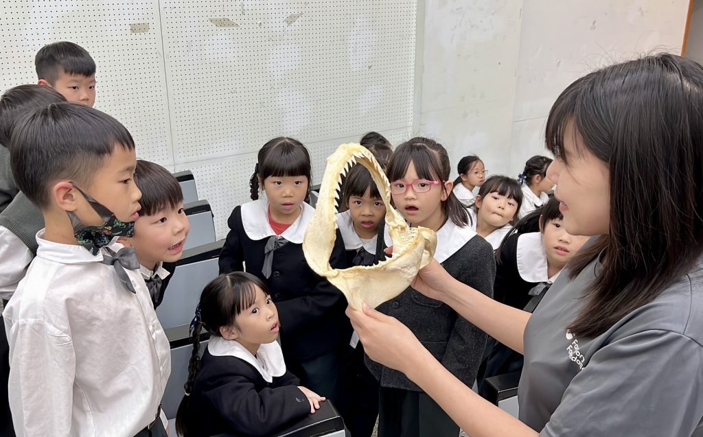 為了增加課程的互動與趣味性,課程活動從生物的外型特徵、行動方式、覓食習性與棲地差異出發,帶領學童認識生物如何在環境中生存。並透過掠食者與獵物的角色扮演遊戲,深入體驗與理解生物的適應作用。「玩中學」的教學方式,不僅激發孩子們對自然科學的好奇與興趣,也引導他們思考如何與海洋環境共存共榮,從小培養守護海洋的意識。